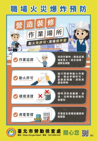 近年來,工作場所中發生的火災與爆炸意外頻傳,造成嚴重的勞工傷亡與財產損失。看似微不足道的疏忽,往往成為災害的導火線。為了強化勞工與雇主預防職場火災爆炸之職業安全衛生知識,臺北市勞動檢查處於今日上午 ...更多
